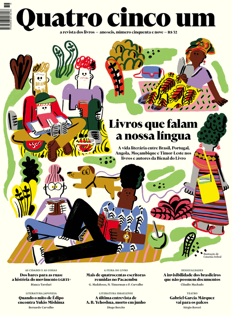 A 59a. edição traz o especial “Livros que falam a nossa língua”, sobre literatura em língua portuguesa. Descubra a vida literária entre Brasil, Portugal, Angola, Moçambique e Timor-Leste nos livros e autores da Bienal do Livro de São Paulo, que acontece em julho. Arte da capa: Catarina Sobral.